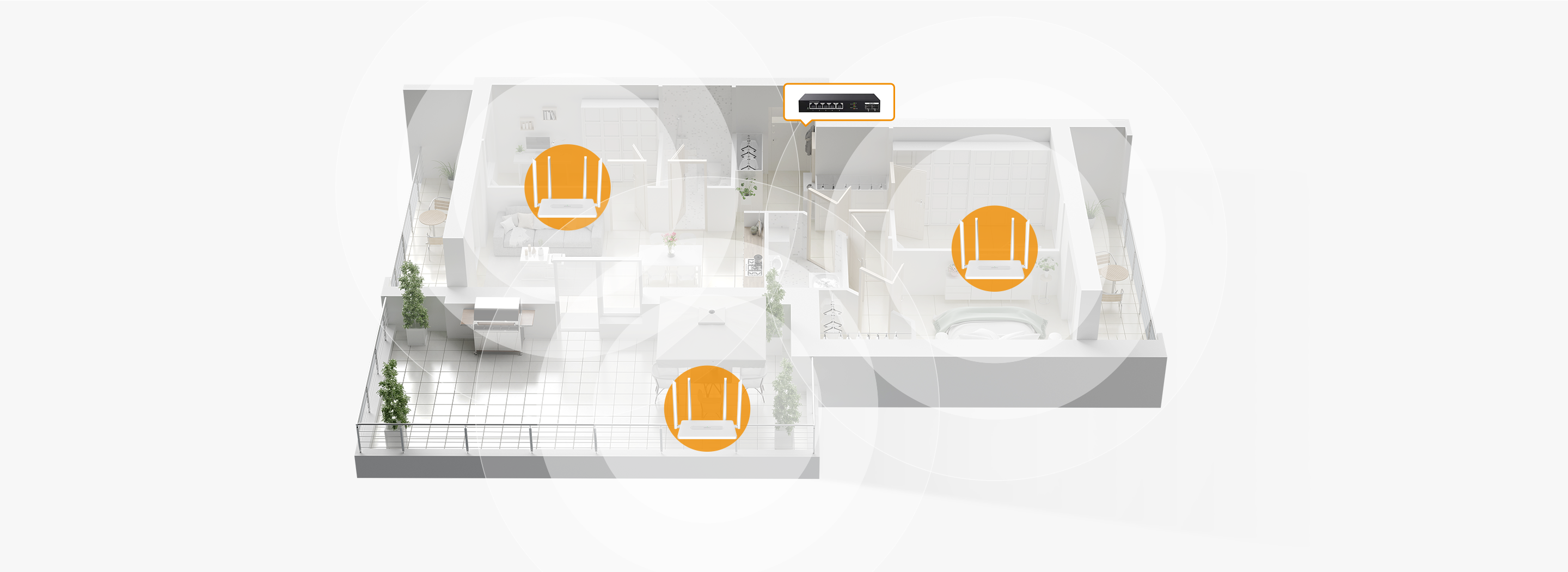 IMOU Link™ 2.0 mesh networking technology adds a parallel networking method where the master node location no longer has to be placed at the optical modem, allowing you to save the cost of a router and achieve seamless whole-house signal coverage.
